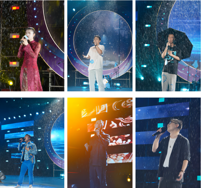 經(jīng)過第一輪的競(jìng)唱后,剛停歇的大雨仿佛也被歌聲感染,開始如注而下,但絲毫沒有阻擋歌手、觀眾的熱情,現(xiàn)場(chǎng)卻沒有一個(gè)人離去。隨著一段悠揚(yáng)、極具電影感的“雨中薩克斯”表演,將音樂節(jié)推向一個(gè)新的階段,主持人在雨中主持,選手在雨中激情歌唱,觀眾們打起傘、披上雨衣冒雨觀看,歌聲、雨聲、伴奏交相輝映,演繹了一場(chǎng)經(jīng)典而深刻的“雨中音樂節(jié)”。