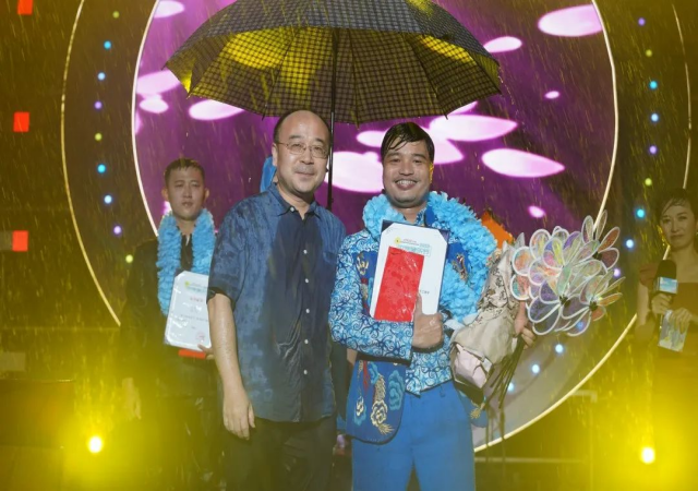 最終,龔豪獲得大眾評(píng)委最多投票,榮登2023中偉音樂節(jié)總冠軍,王楠、龍翔分別獲得比賽的亞軍、季軍。鄧光明、閻冬、趙丹分別為冠、亞、季軍頒獎(jiǎng),并向他們表示祝賀。