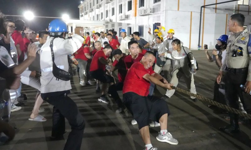 在基地的生活廣場上,陣陣吶喊加油聲響徹天際,“首屆中印尼員工拔河比賽”正進(jìn)行得熱火朝天。每一次奮力的拉扯都凝聚著團(tuán)隊的力量與信念,在一聲聲口號里,中印尼員工擰成一股繩,咬緊牙關(guān),全力以赴,不僅展現(xiàn)了不屈不撓的精神風(fēng)貌,更在每一次勝利與失敗中體會到了團(tuán)隊協(xié)作的真諦和勇于拼搏、不斷前行的精神力量。