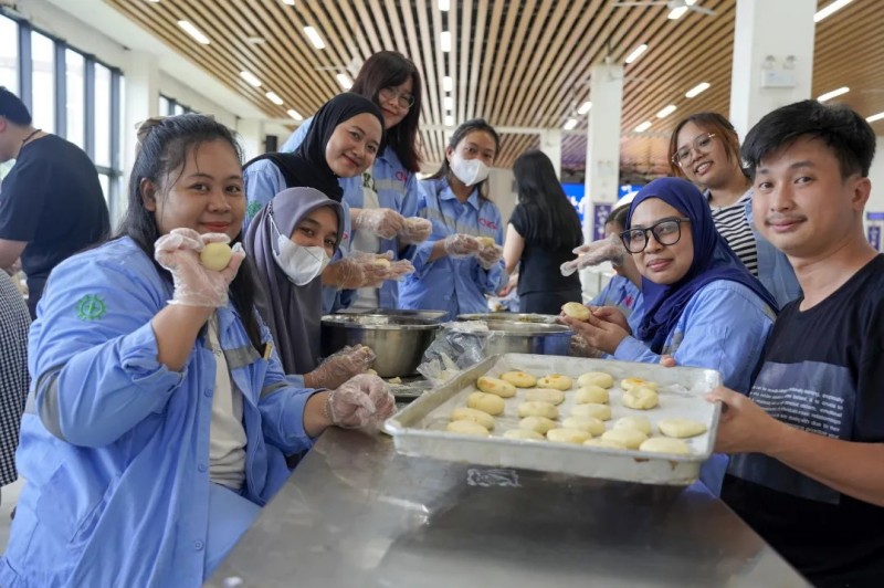 為了給大家創(chuàng)造美好的節(jié)日記憶,莫羅瓦利產(chǎn)業(yè)基地在中秋節(jié)當(dāng)天開展了“月餅制作活動”?;顒蝇F(xiàn)場,中、印尼籍員工齊聚一堂,在專業(yè)廚師的指導(dǎo)下共同制作專屬創(chuàng)意月餅。大家在交流與協(xié)作中體驗(yàn)手作的樂趣,一塊塊月餅不僅承載著節(jié)日的甜蜜,更成為連接不同文化背景員工之間的情感紐帶,進(jìn)一步加深了團(tuán)隊(duì)情誼與文化理解。
